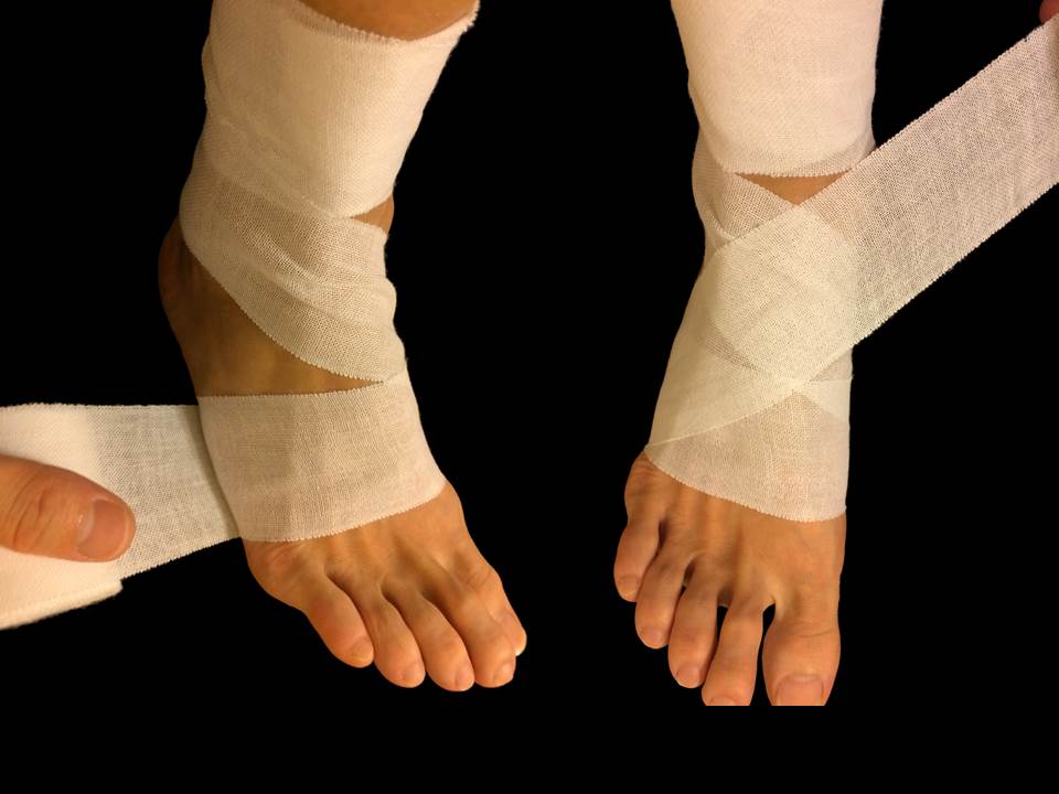 足首を痛めた時に役立つ包帯の巻き方~伸びない綿包帯編~