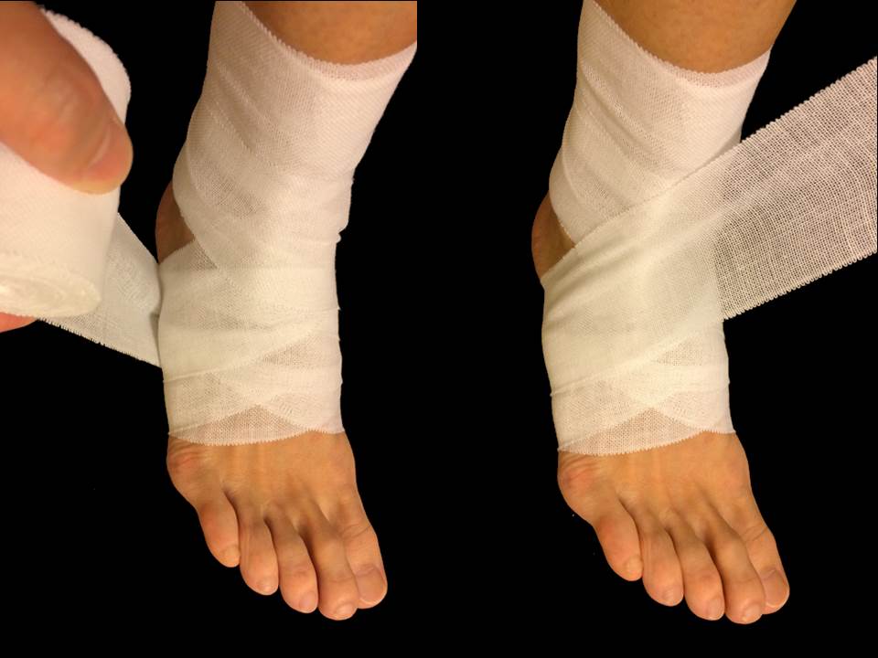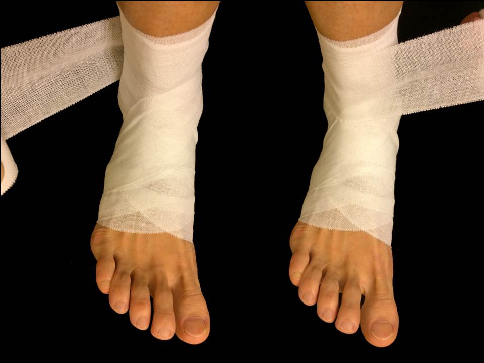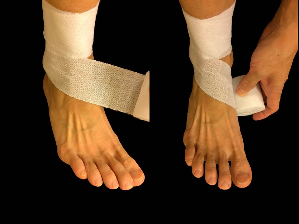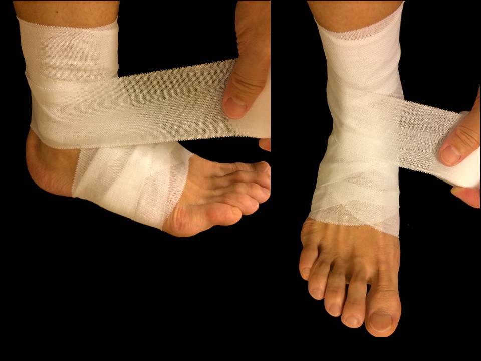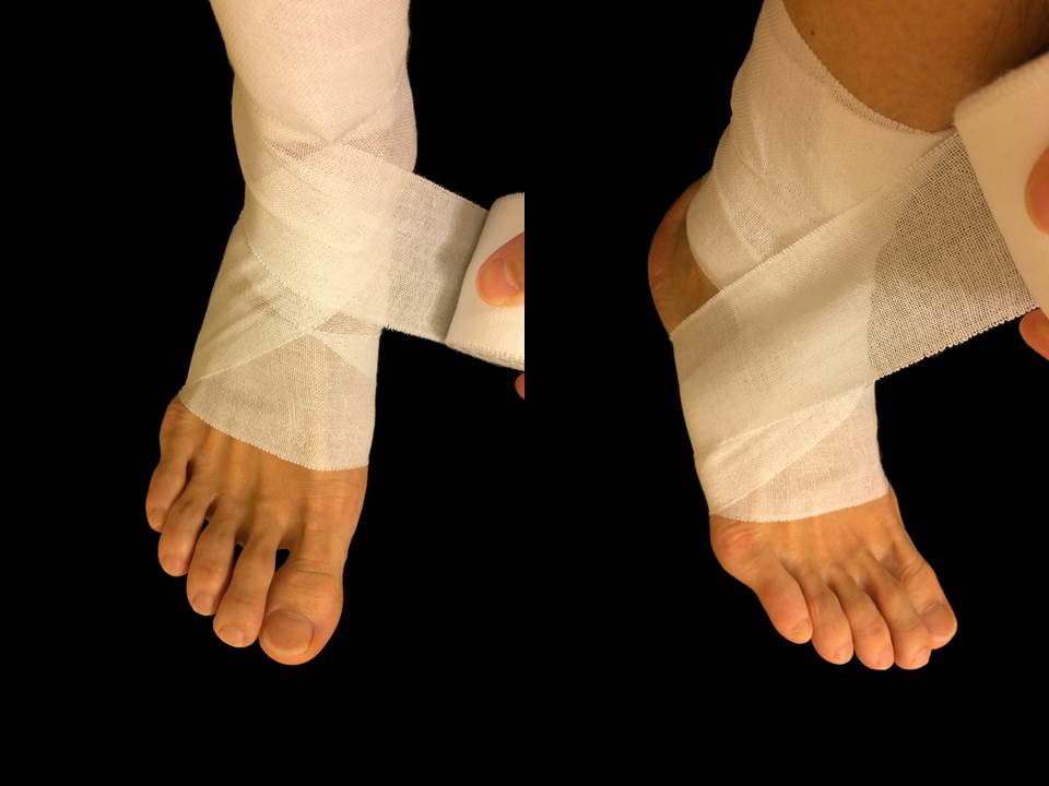 • 足関節の包帯足首を痛めた時に役立つ「包帯の巻き方」~伸びる包帯編~